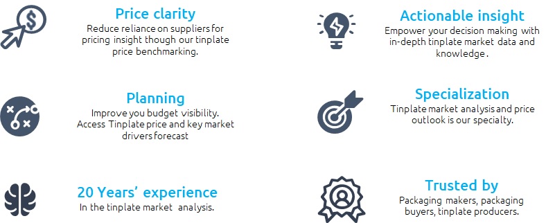 Benchmark tinplate annual prices.> Reduce reliance on suppliers for pricing insight. Insights.