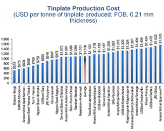 - The ability to compare production costs of 51 tinplate mills around the world, at any stage of the production process, including a complete range of cost classifications: raw materials, labor, energy, reductants, and capital charges.